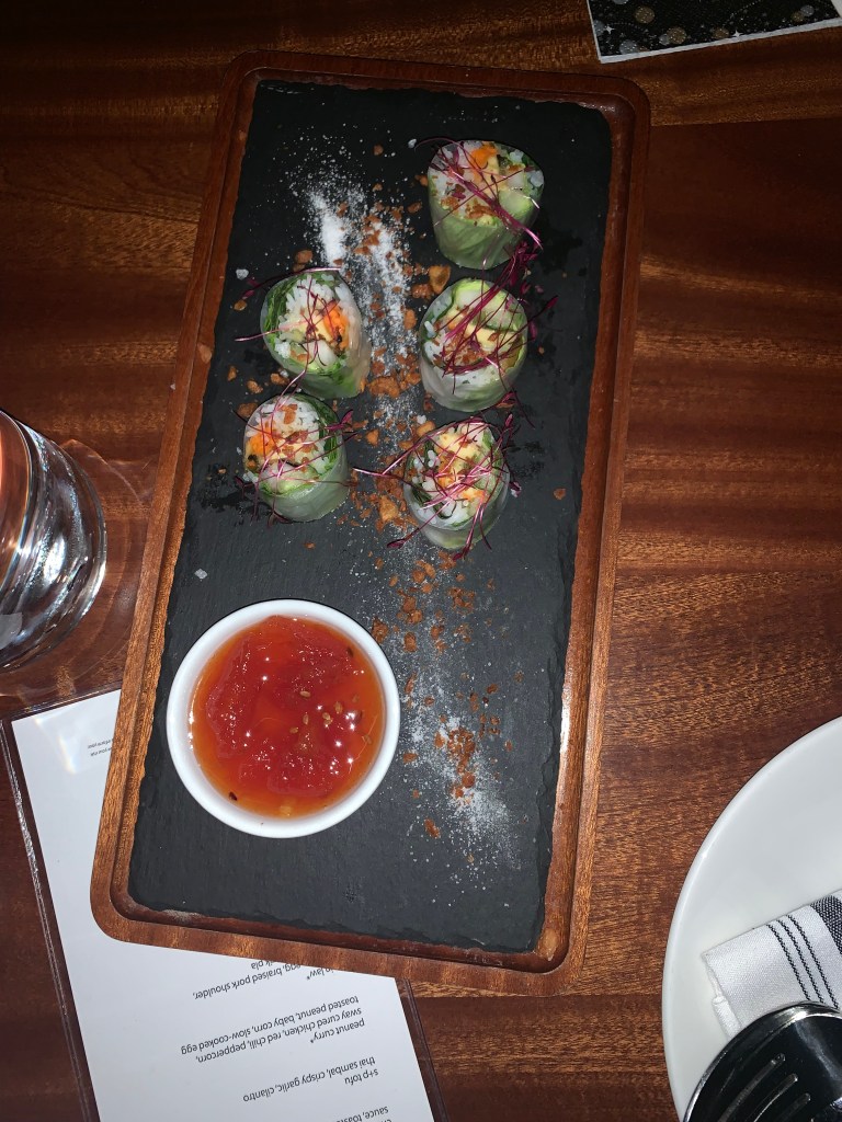 It was extremely similar to the spring rolls you would find in the sushi section of Whole Foods, which I love, but had a more upscale aspect with the tomato vinegar jelly sauce. It was a really great appetizer and got me hyped for the rest of the food, especially since I wasn’t super hungry when I first sat down.