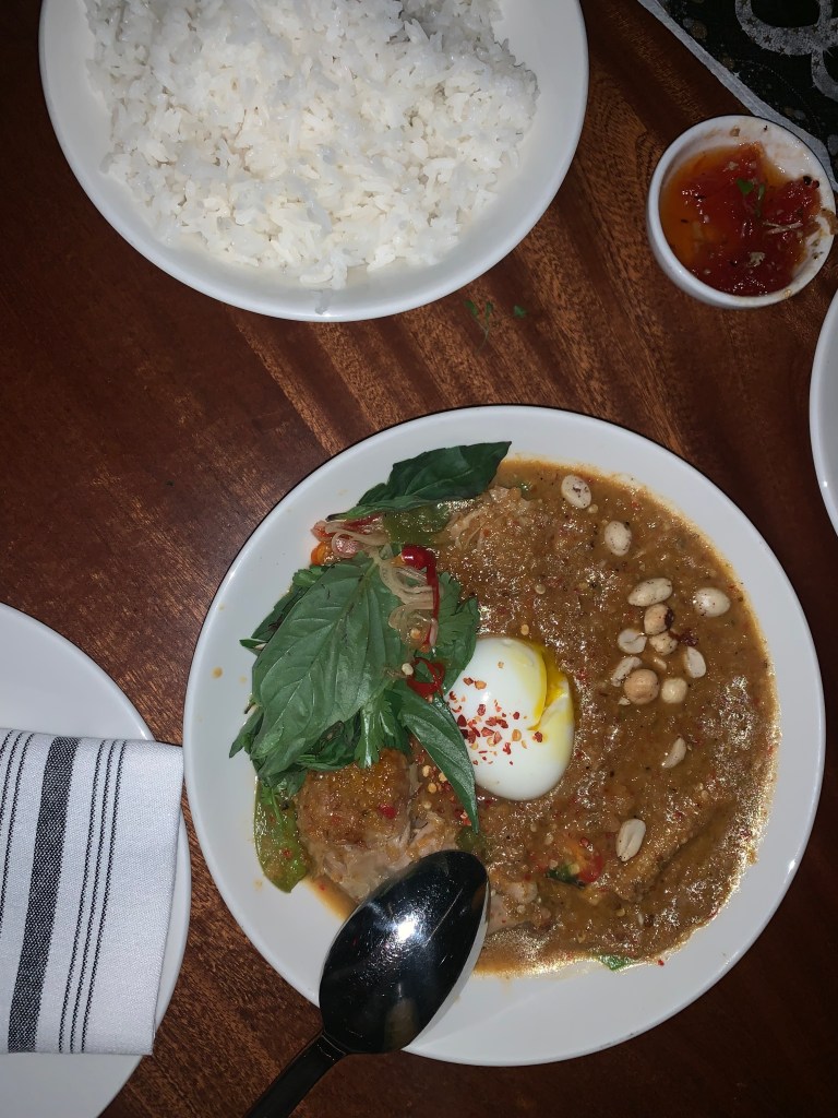It was by far one of the spiciest dishes I’ve ever eaten. Yes, I am not a fan of spice in general, but all 10 girls at the table were complaining, many even getting inflamed lips and beads of sweat just from a few bites. The server eventually brought out coconut cream to offset the spice, but it was still hardly edible. I guess looking back on it, I’m confused why they would make a dish so spicy, especially when it was the MILDEST curry on the menu!!!!! It was sad too because the chicken (next to the spoon in picture) was so well cooked and had great flavor (by itself), but it was slathered in the flaming hot curry :(.