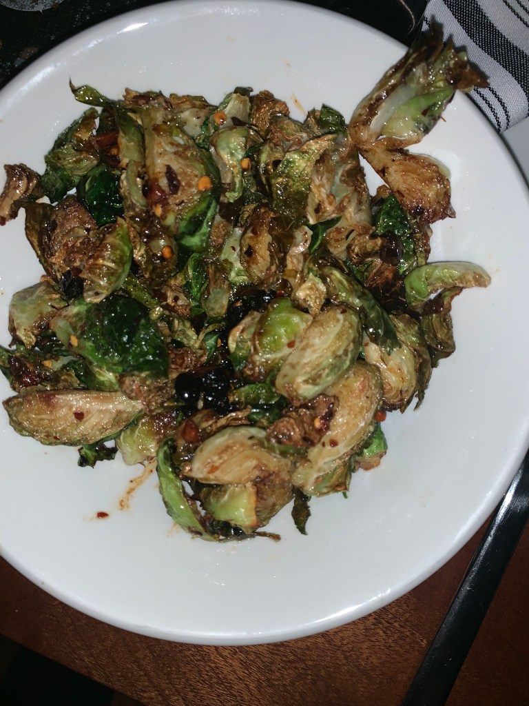 If you didn’t notice, chili flakes coat the brussel sprouts… another warning sign?