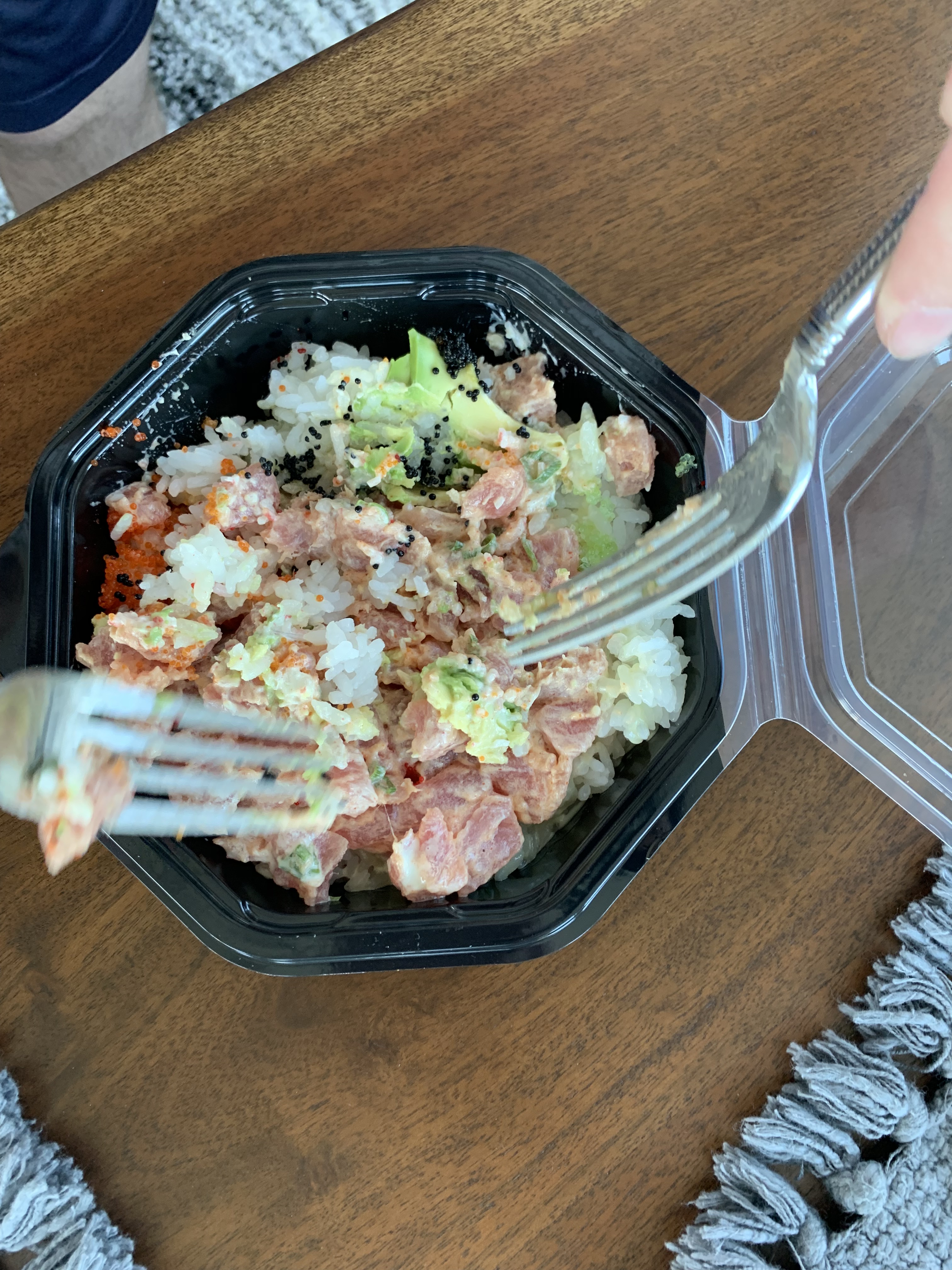 Now if you know me, you know I love a good tuna tower. This was just sad looking. The rice to fish/topping ratio was whack, and it was kinda spicy, but not wasabi spicy… should I be concerned?? Anyway, broke my heart to get like 3 bites in a row of rice without any tuna in it, so clearly, they’re slacking on that front too.