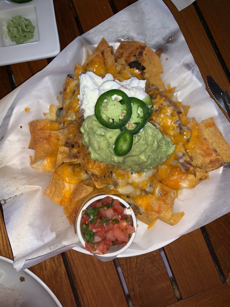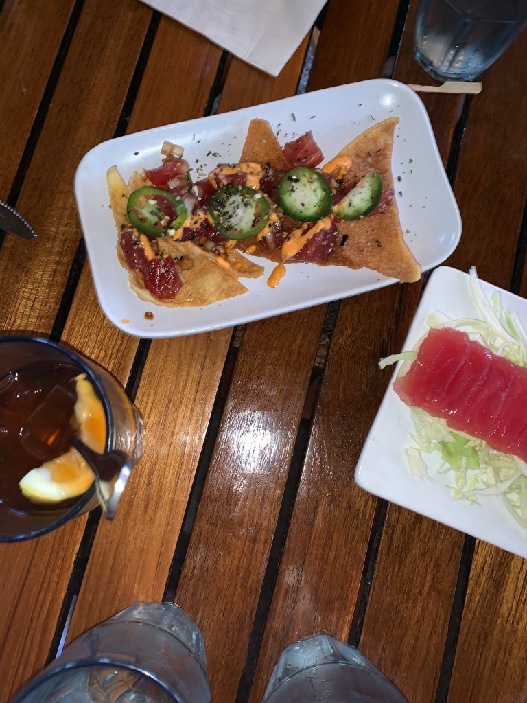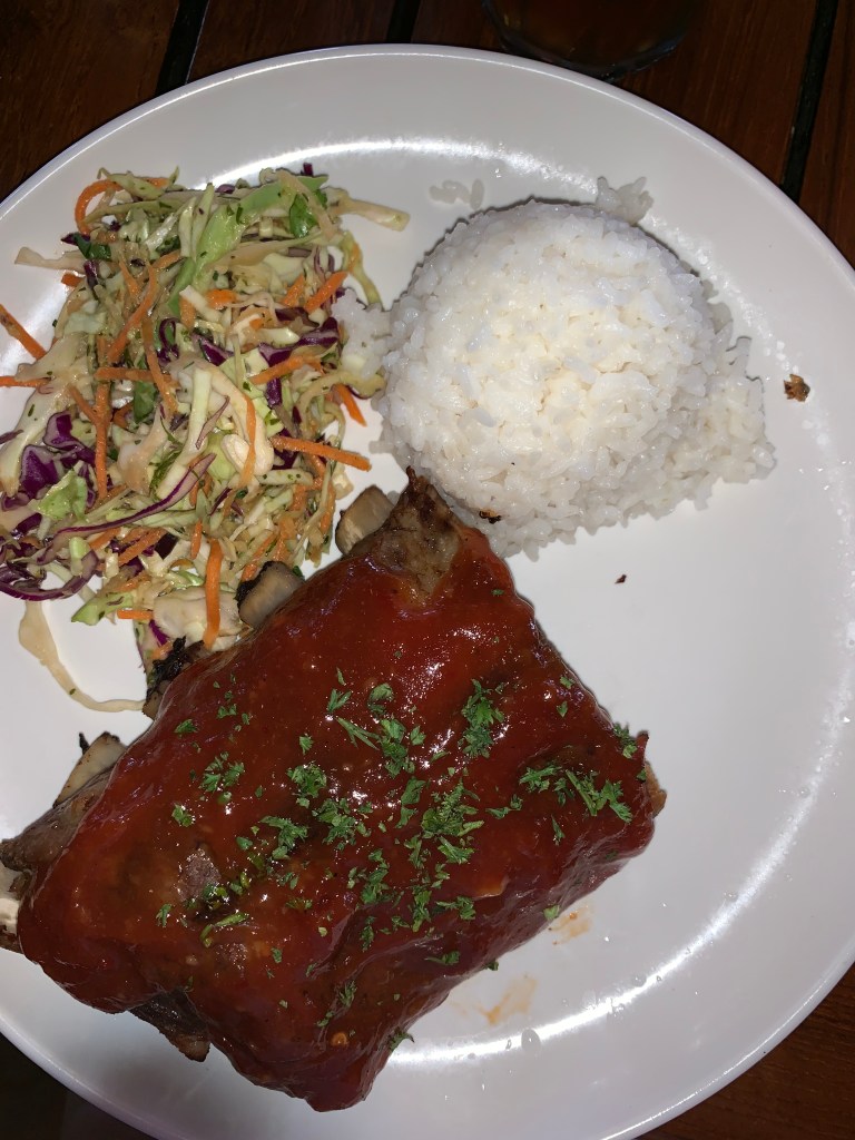 Dukes is a really great spot in Lihue near the south side. I actually ate their twice, once for dinner and again for lunch, so clearly this place was pretty good. It’s a great outdoor bar with a surfer theme dedicated to the famous surfer Duke Kahanamoku. For dinner, we had the ribs, which were falling off the bone and had great flavor. Along with the nachos, which were super cheesy and crisp and had a good ratio of meat to cheese to chip, we also had ahi tuna as well as sashimi, which legit melted in your mouth it was so fresh.