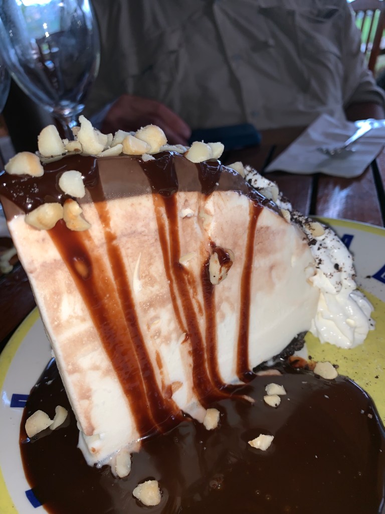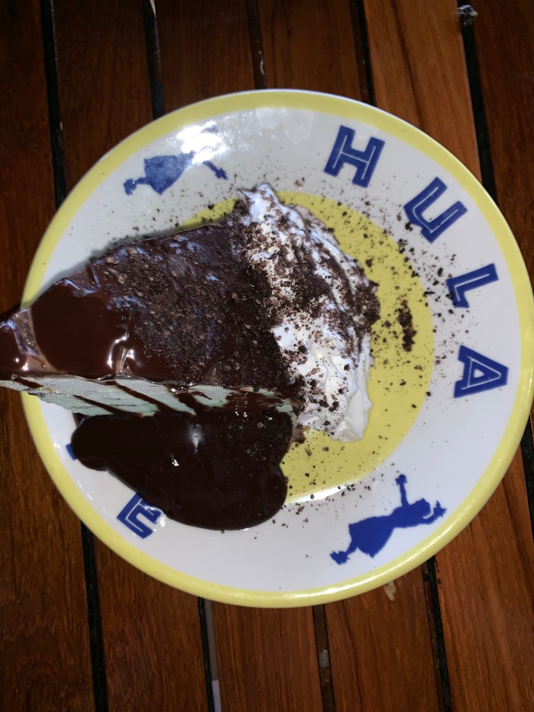 Lastly, but most importantly, I have to talk about hula pie. If you’ve been to Hawaii, you’ve probably seen or hopefully tried one of these babies before, but if not i’ll try and break it down for you: It’s a huge bowl filled with ice cream and topped with a cookie crumb crust, then refrozen, flipped right side up, coated in chocolate sauce, and a huge (I mean huge) slice is cut and served. Idk if I even need to explain how good this “pie” is, the pictures pretty much sell how great it is. They’re sold at many restaurants all over Hawaii and come in several different flavors—I have to say the macadamia nut pie was my favorite.