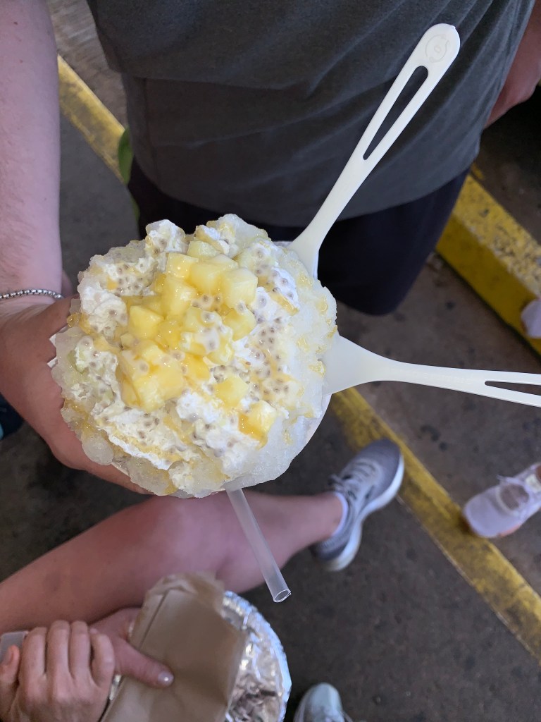 Another perk is that right next door is a shaved ice food truck which was ridiculous. We got a lime shaved ice with pinapple, cream, and vanilla ice cream in the bottom! It was so refreshing and really hit the spot.