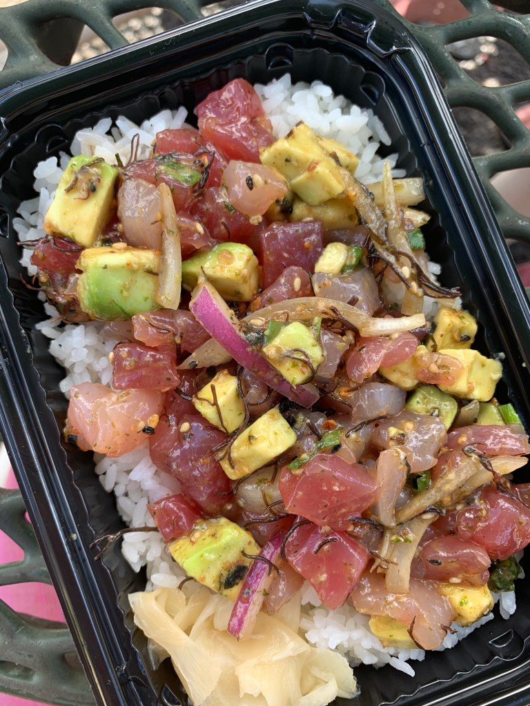 You can’t go to Hawaii and not get fresh poke. I happened to be on the north side of the island when my craving for poke hit, but there are several food trucks all over the island with similar menus and equally fresh fish. This specific poke truck was in a really great spot, near other cute shops and restaurants–which is perfect if you are with picky eaters–and has a gorgeous views of the mountains.
